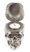 · A Continental silver skull desk clock