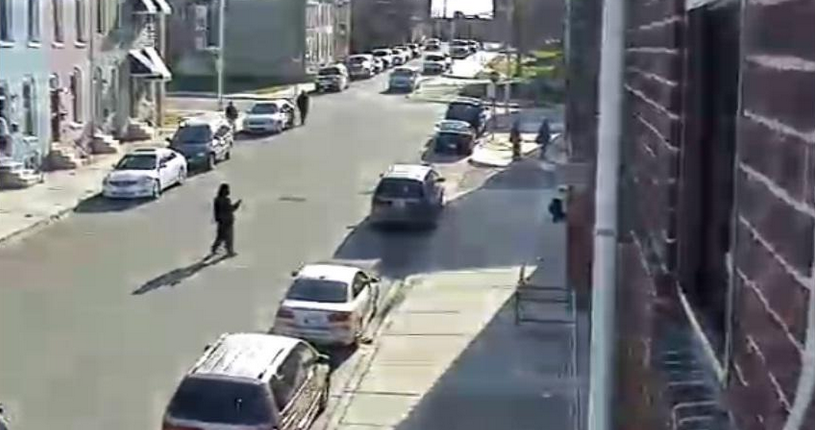 The photograph is taken from a Baltimore City closed-circuit camera in the area. Photo courtesy of Baltimore Police.