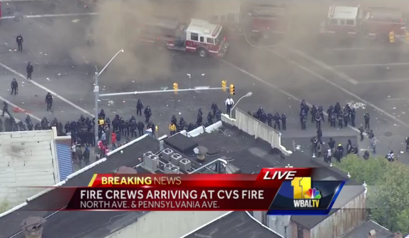 A CVS store, one of the first looted in the violence, was set ablaze in the chaos. After fire crews were able to reach the store, Baltimore Police say the group of rioters cut one of the fire department’s hoses while first-responders tried to put out the fire.