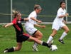 The Quakers tied the score less than 10 minutes into the second half when Amy Lieber lofted a cross that took a high bounce and eluded the Bryn Mawr keeper. Friends’ Abby Corkum flicked the ball into the net to knot to game at 1-all.