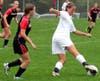 Then, less than three minutes later, Matz headed a neatly-placed corner feed past Quaker keeper Aislinn Cook to give Bryn Mawr the lead for good. The combination struck again from the same right-of-goal setting with just more than five minutes left in the game when Matz deflected Hogarth’s corner feed with her foot and into the goal.