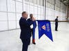 Maj. Don Ells, Commander, Group II affixes the Maryland Wing Unit Citation streamer to the Glenn L. Martin Composite Squadron unit flag guidon with Lt. Col Earl "Rock" Williams viewing the process.