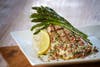 - Pecan-buttered Swordfish – Swordfish steak rubbed with Gordon Biersch’s house seasoning blend, then grilled and smothered in pecan butter and garnished with spiced pecans. Served with a choice of two sides.