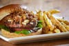- Gastro Pub Burger – Choice of steakburger or kobe beef burger with Bacon jam, housemade bleu cheese sauce, mixed greens, tomato, gorgonzola cheese and sweet caramelized onions.