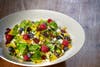 - Spinach, Fruit & Nut Salad – Baby spinach tossed in Gordon Biersch’s lemon vinaigrette and served with dried cherries, minced pears, goat cheese, blueberries, raspberries, spiced pecans and sweet yellow peppers, sprinkled with toasted almonds.