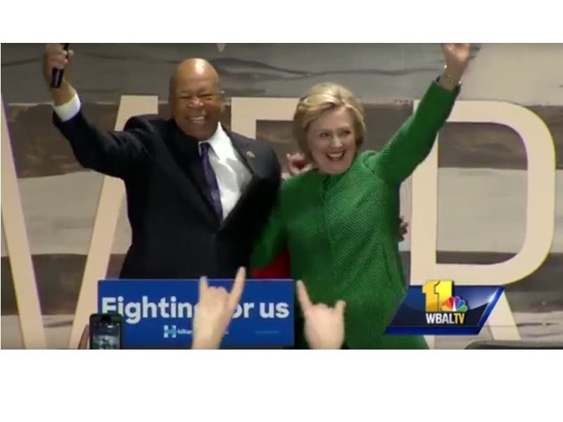 Clinton and Cummings were joined onstage by Maryland’s Democratic senators, Barbara Mikulski and Ben Cardin, who had pledged their support to Clinton earlier in her campaign.
