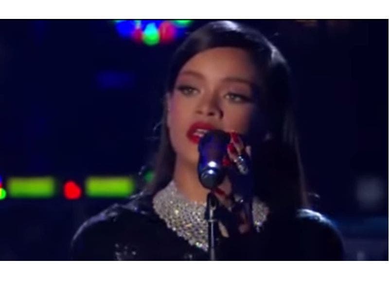 Screenshot of Rihanna performing ”Diamonds” at the free Concert for Valor in Washington, D.C., in November 2014, from Rihanna VidiestMusic/YouTube.