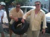 On the way, we ran into Ken Horsman who was lugging a used tire from one of the cars. He owns the Illusions Theater where his son Spencer performs feats of Houdini-like magic.