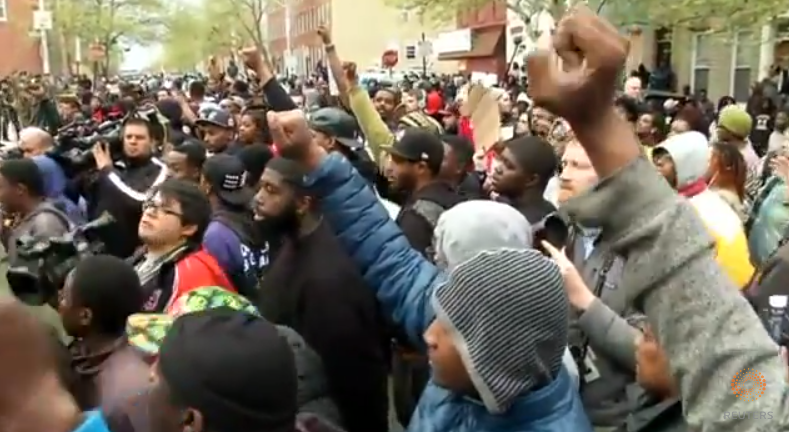 Screenshot of Freddie Gray demonstration from Reuters/YouTube.