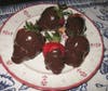 Stick a narrow 4-6 inch wooden skewer into each berry, starting at stem end. Carefully dip each berry into the warm chocolate. Place each berry back on the plate and place in the refrigerator. They taste best when eaten within a few hours.