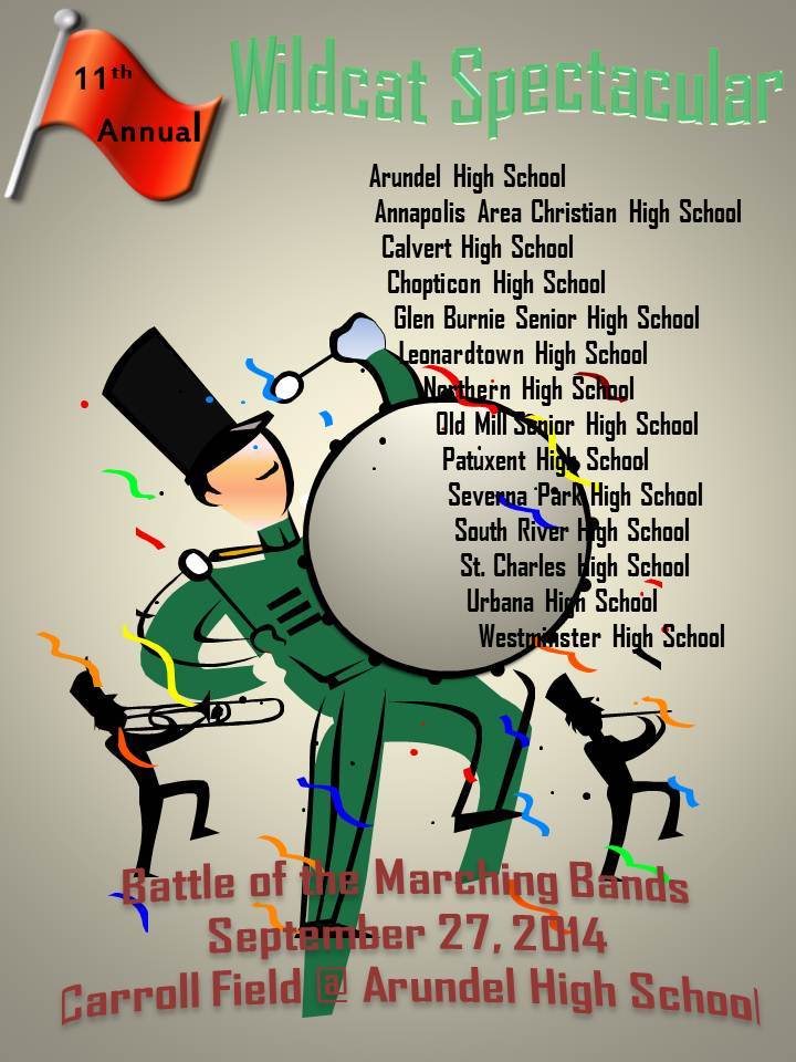 The Arundel High School Music Department will host our 11th annual Marching Band Wildcat Spectacular on Saturday, September 27 at 12 Noon.