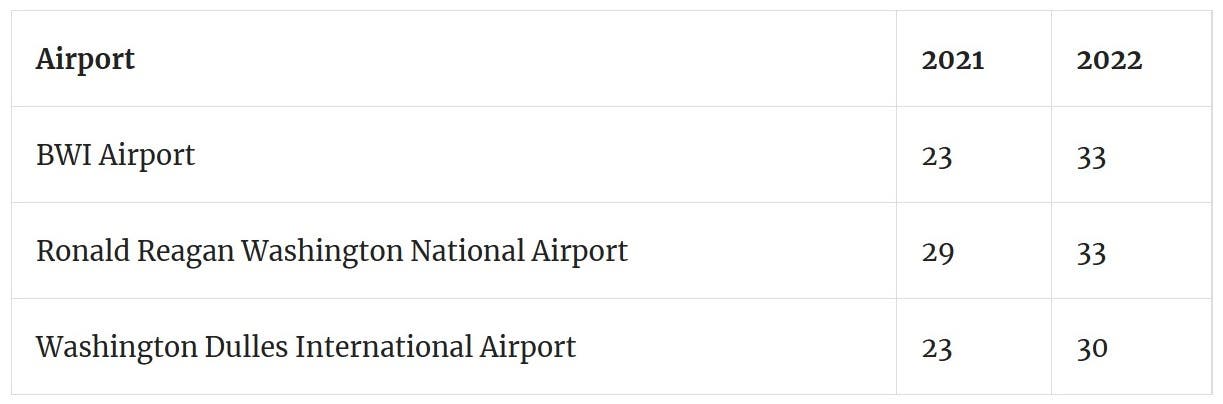 Baltimore/Washington International Thurgood Marshall Airport is part of this spike.