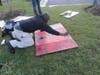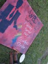 Tauren Lovell, a 2008 Meade High graduate now attending Frostburg State University, staged a peaceful counter-protest with graffiti art. Lovell knelt on a grassy area and used spray paint on a poster to create a scene with the words “Meade Senior High Counter-Strike.”