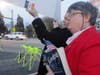 Sharon Lewis, a state department of transportation worker from Brooklyn Park, led a small group in singing "Amazing Grace," while holding her Bible. She said the views of the Westboro Baptist Church were counter to her understanding of God's teachings.