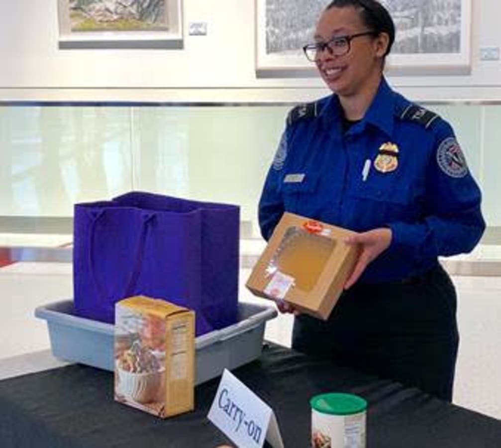 HANOVER, MD — Airports nationwide will be jam-packed with fliers this Thanksgiving week through Nov. 26, and some of those passengers are going to cart turkey, pies, gravy, Jell-O molds and other holiday goodies with them. So brace yourself as Transportation Security Administration screeners try to educate airline customers about what foods can go in carry-on bags, and what must be checked — all with more than 2.4 million passengers per day expected to pass through TSA checkpoints each day leading up to Thanksgiving.