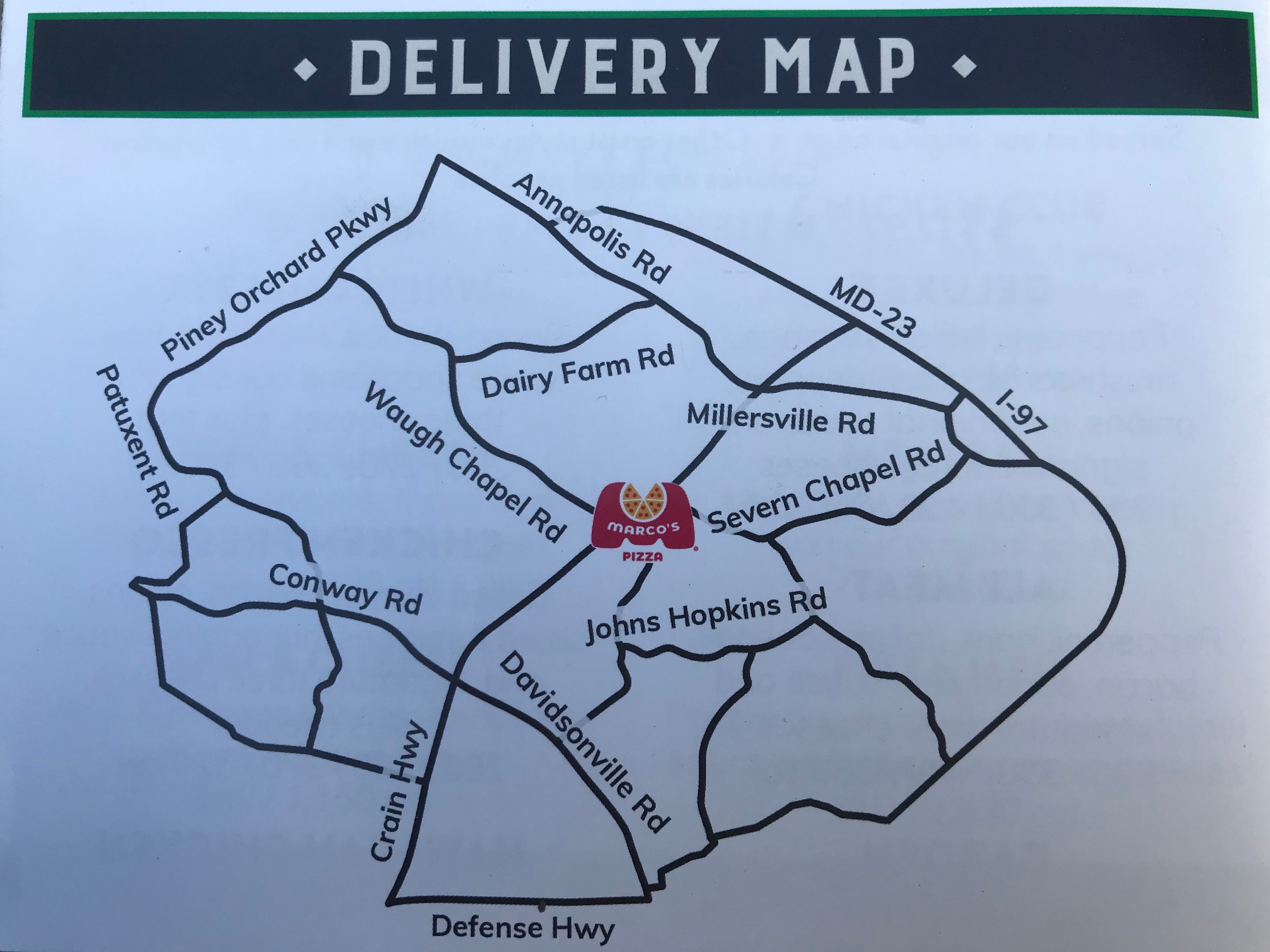 Customers can get carryout or delivery through app, phone or web orders. Visit marcos.com or call (443) 645-9000 to place an order.