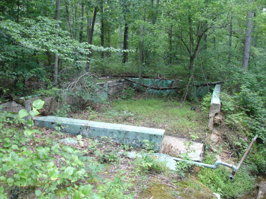 The Salvation Army once operated a fresh air camp in Woodwardville for low-income children living in Washington, DC. Today, only a shell of a swimming pool remains.