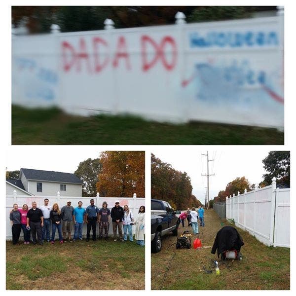 Halloween vandals who defaced a Severn homeowner’s fence with graffiti did not have the last word.