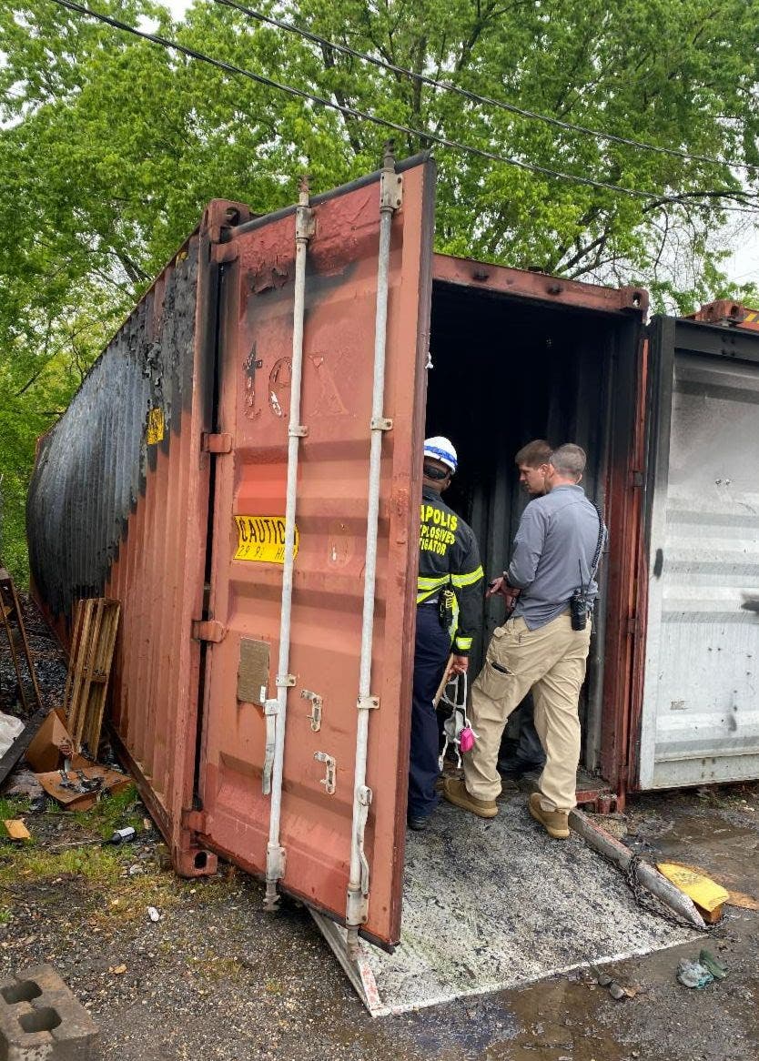 First responders found the container contents on fire and helped the victims. A team of 47 controlled the one-alarm blaze in about 20 minutes, the release said.