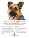 To apply for approval for the Pets for Patriots program go to http://petsforpatriots.org. It only takes a few days to get the approval. Then come on over the shelter to meet your future best friend. After going through our normal adoption process, you can then go home together.