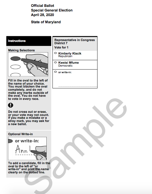"To slow the spread of COVID-19, all voters in the 7th Congressional District are strongly encouraged to vote by mail," the Maryland Board of Elections said in a statement. "The process is secure and the most effective way to slow the spread of the novel coronavirus."