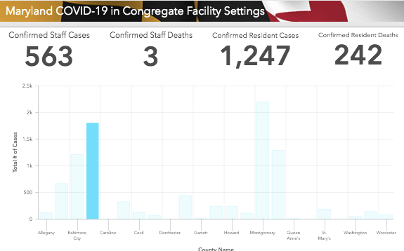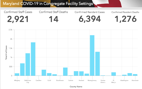 Data about coronavirus at congregate living facilities is updated weekly on Wednesdays by the Maryland Department of Health.