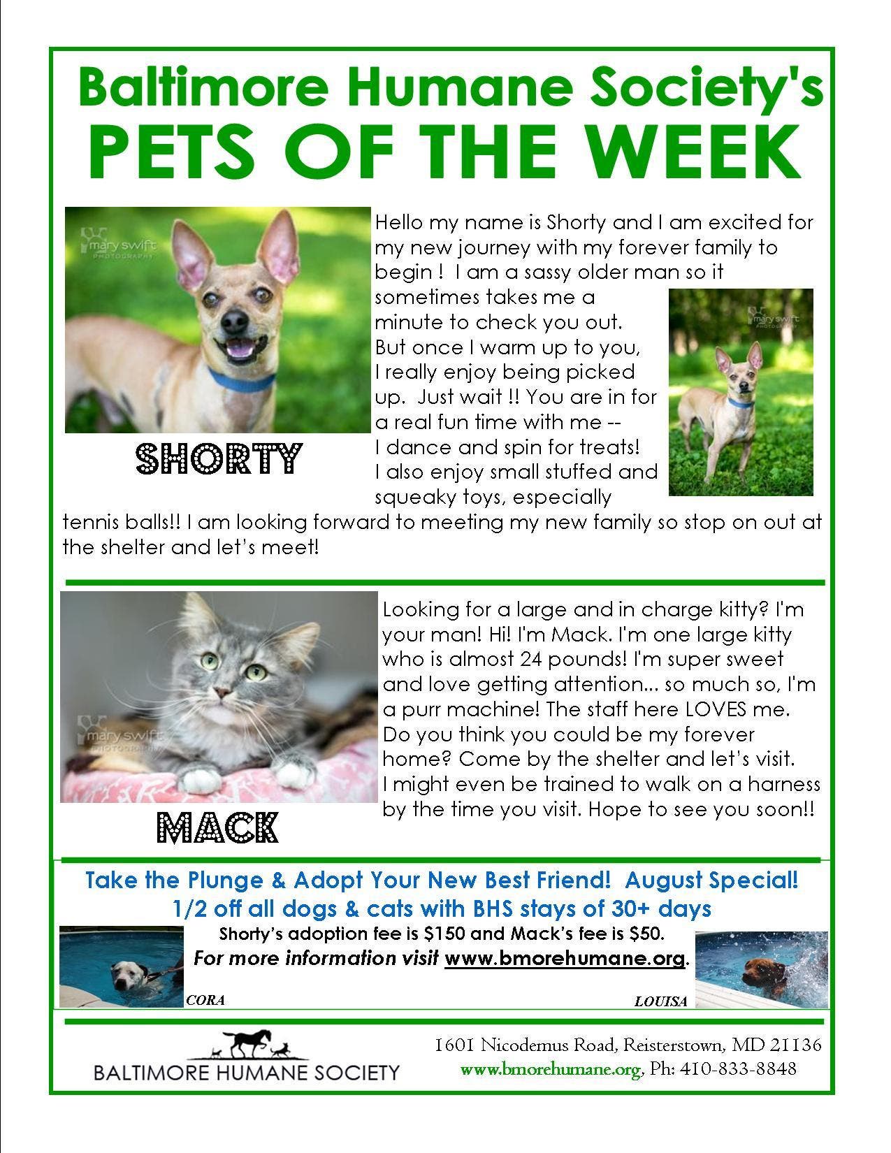 This week’s Pets of the Week at Baltimore Humane Society are Shorty and Mack. Here’s a little about each of them ---