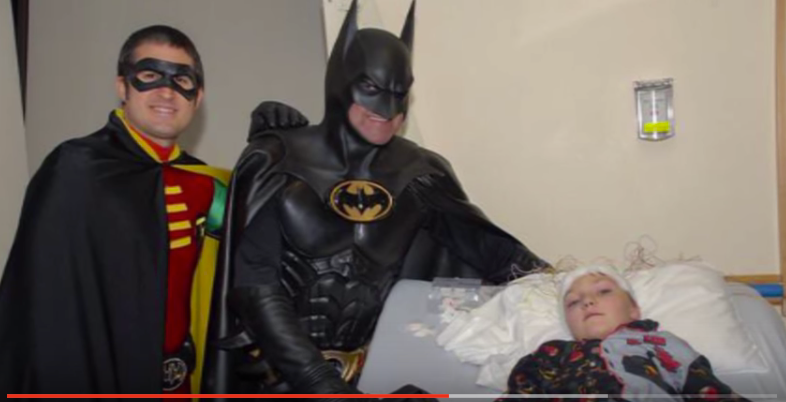 Children's National Medical Center honored Lenny Robinson by bringing several costumed crusaders to meet with sick kids.