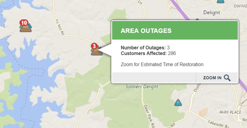 Outages were scattered across the county. In Reisterstown, there were nearly 300 outages concentrated off Deer Park Road.
