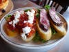 Next sampling was the Brushette Duo with fresh tomato & basil, crumbled goat cheese, drizzle of orange blossom honey and seared hangar steak, whipped gorgonzola, arugula and truffle oil. The use of fresh ingredients not only came through in the flavors and armoas but also in the presentation.