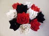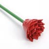If you want leaves just make 2 petals the color of your stem & stick towards the bottom of your rose & onto stem.