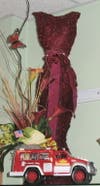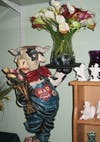 She moves around the shop from one quirky display to the next: colorful Gerbera daisies lining the counter, a bistro table with a floral arrangement and balloons and even an antique tub surrounded by distressed tables and more flowers. On the wall behind the register, a topiary figure shares space with a lady decked out in bunny ears for Easter and a photo of Frank Zappa. Mary Beth grew up in Lutherville, so the Zappa fixture is a must.