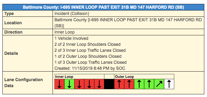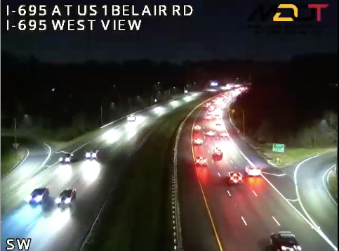 A vehicle had rolled over, trapping two people on the outer loop of I-695 between Harford and Belair roads, according to the Baltimore County Fire Department.