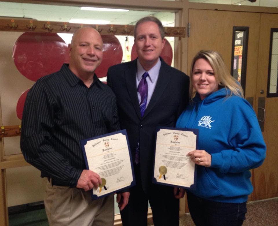 Photo of Bill Paulshock and Kelli Szcyzbor courtesy of Baltimore County Councilman David Marks, also pictured.
