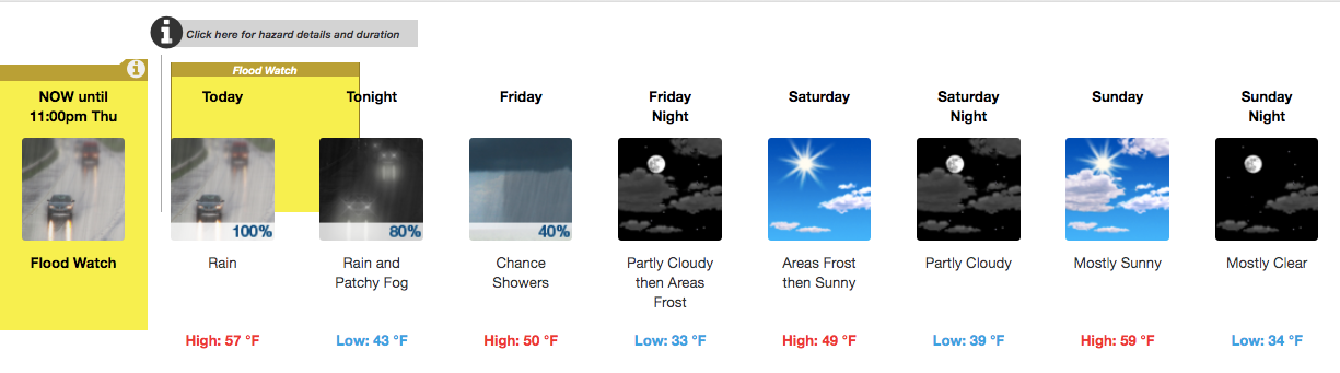 Authorities post flood watches when the forecast indicates potential for flooding. Those living in areas prone to flooding should be prepared to take action.