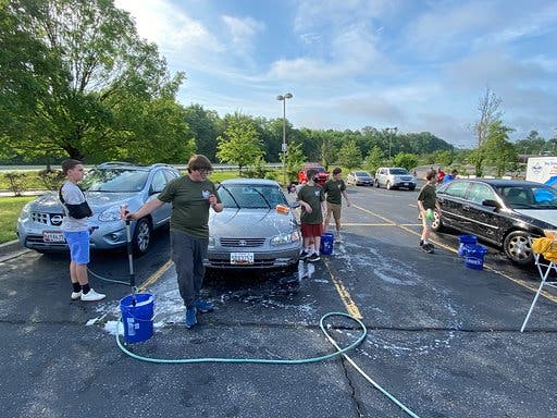 Boy Scouts from Baltimore County treated health care workers to a car wash as a service project.