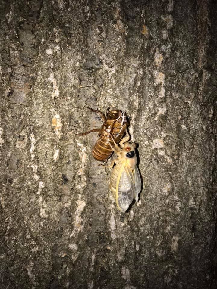Dawn Schwartz Kelly captured pictures of cicadas in the process of shedding, also known as molting.