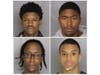 Pictured are those charged, clockwise from top left: Dawnta Harris, Darrell Ward, Derrick Matthews, Eugene Genius; and photo of Officer Amy Caprio. Images courtesy of Baltimore County Police Department.