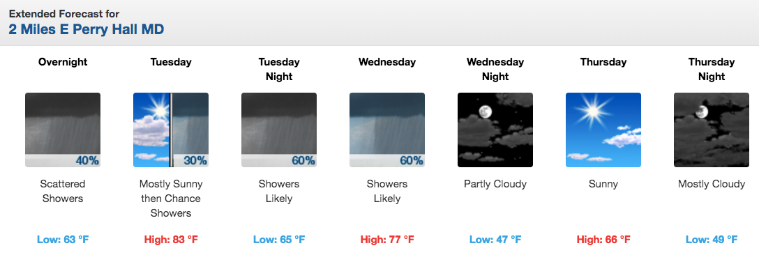 See the Perry Hall forecast from the National Weather Service:
