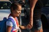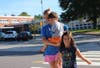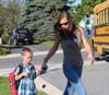 Lucy White-Lehman, whose daughter Chloe Lehman is starting kindergarten, said eliminating buses contributed to more traffic Wednesday morning from parents who opted to drive their children.