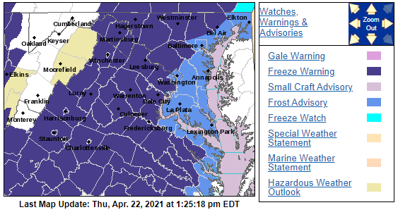 Freeze Warning, Frost Advisory Issued For Much Of Maryland