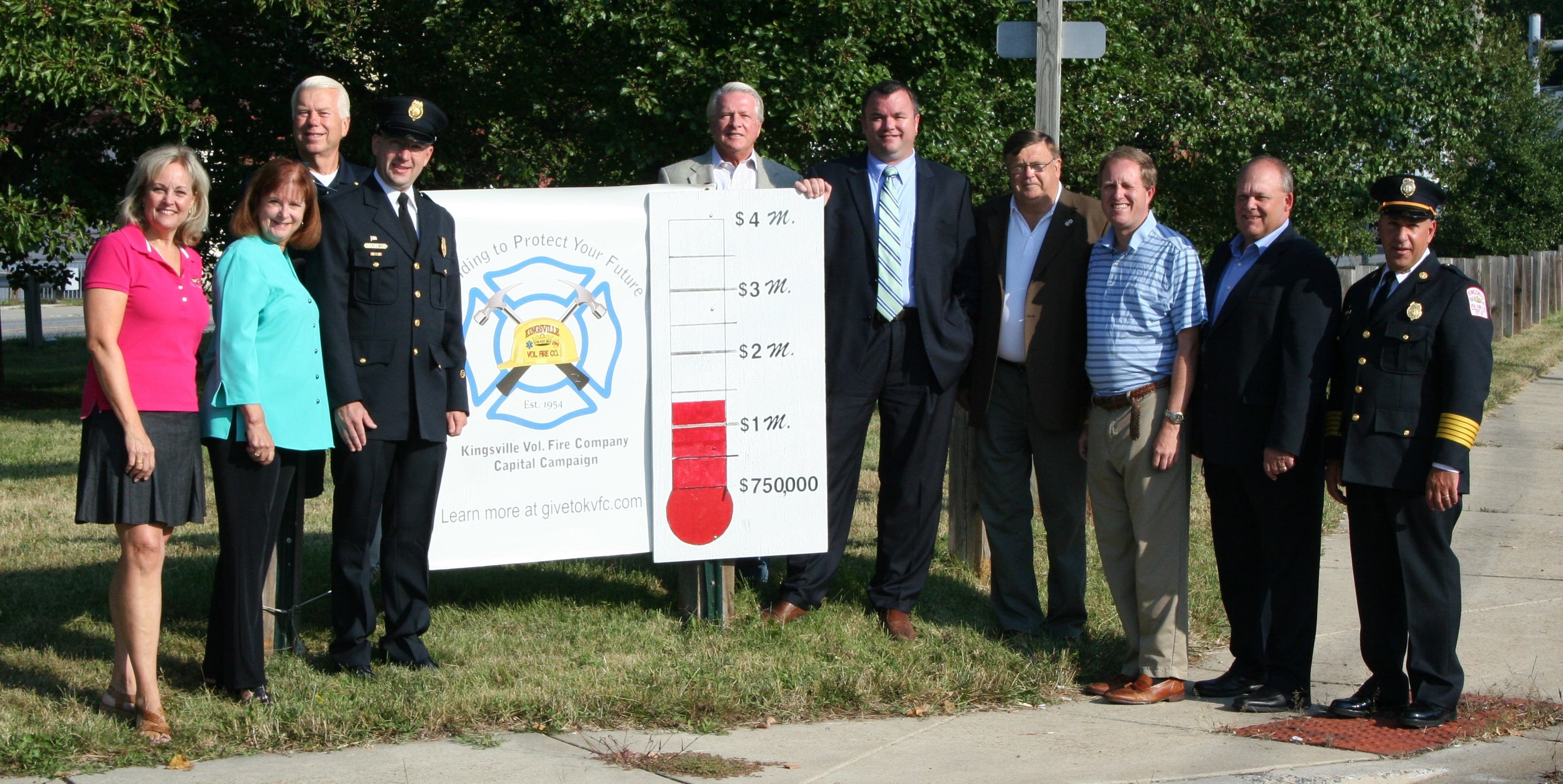 The Kingsville Volunteer Fire Company celebrated a milestone Saturday with elected officials; the organization has raised $1.2 million toward its $4 million goal toward a new firehouse, according to a statement from the fire company.