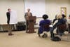 Robinson introduced Marks and Bevins and asked meeting attendees to be civil while asking questions.