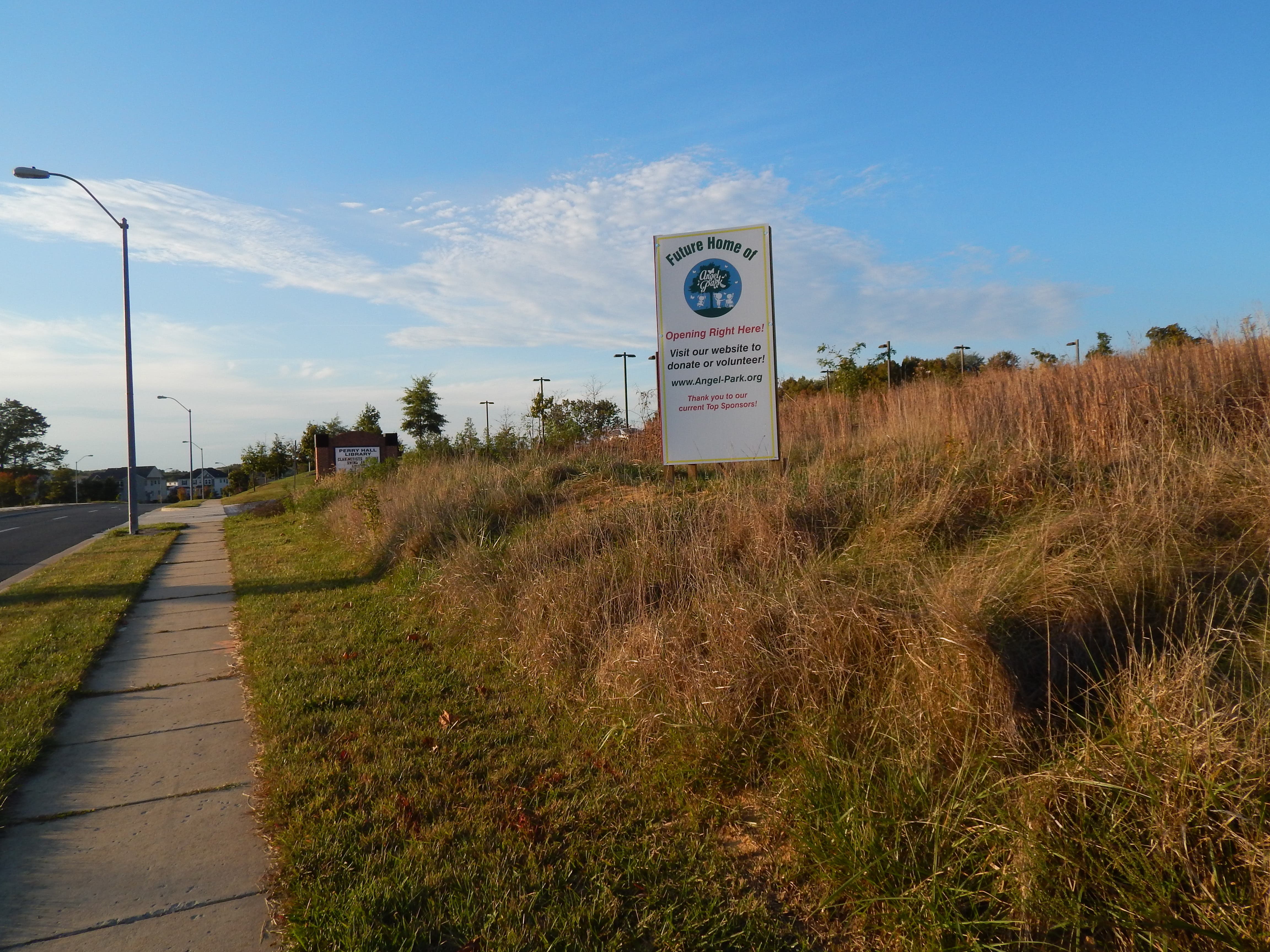 The Angel Park Committee, which has been coordinating plans for the site next to the Perry Hall Library, will unveil a new sign on Friday. The signage will designate the future site of the park and recognize sponsors, according to organizers.
