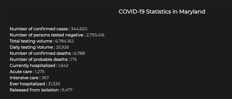 Here is the latest coronavirus data in Maryland as of Tuesday, Jan. 26: