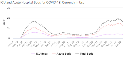 Two weeks later, the number has decreased by 310; state health data shows 1,642 patients are hospitalized with the virus Tuesday, Jan. 26.