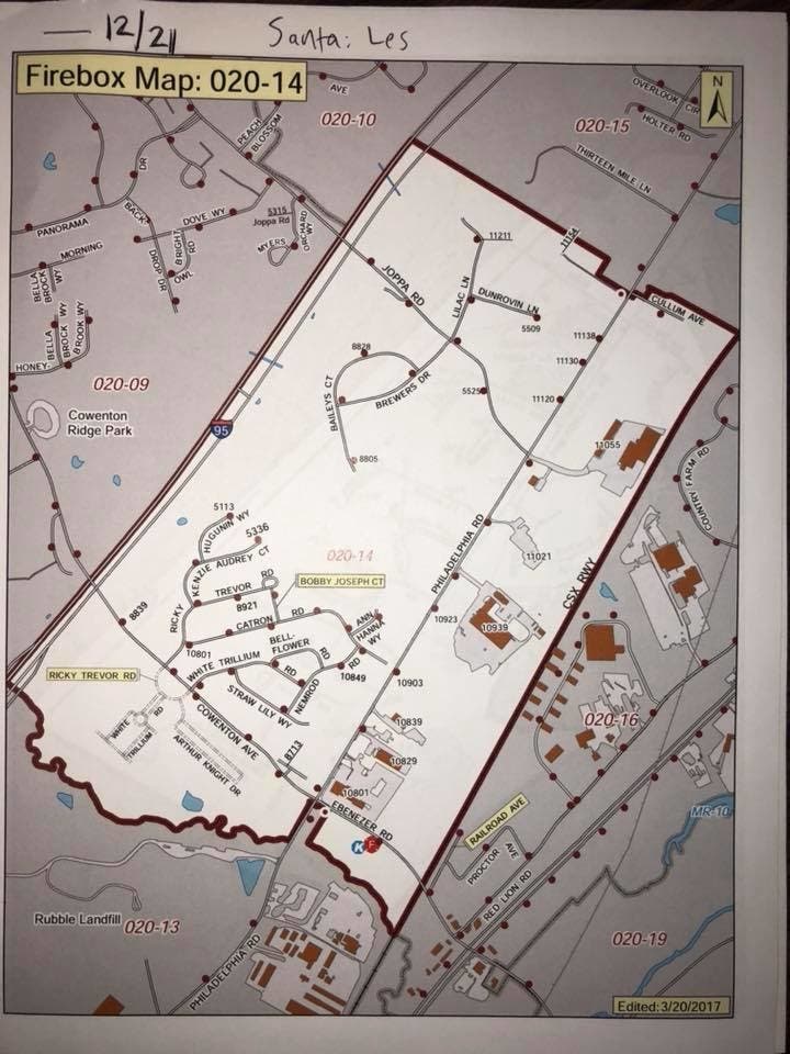 File photo by Elizabeth Janney. Santa route maps via White Marsh Volunteer Fire Company.
