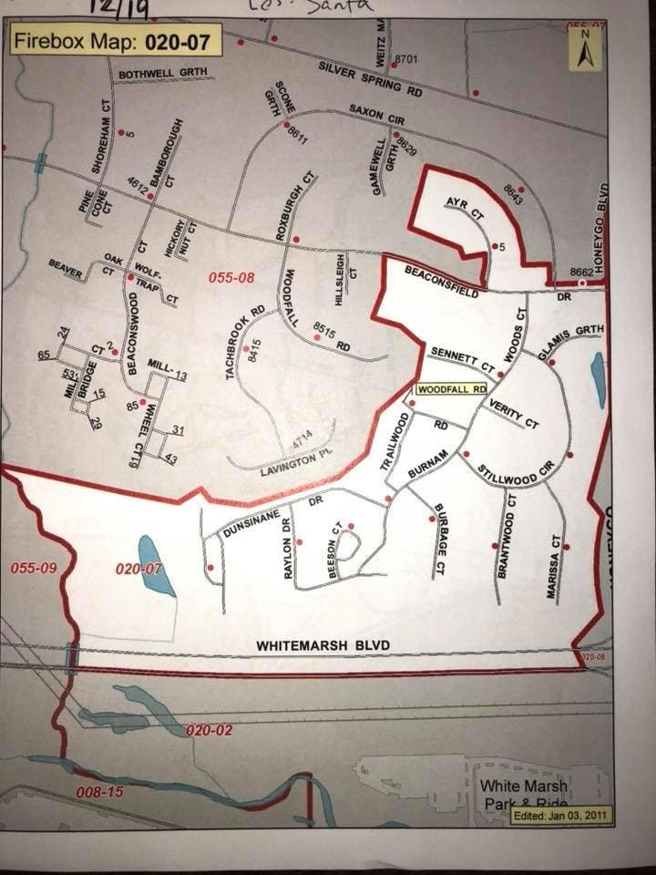 The White Marsh Volunteer Fire Company will take Santa around these areas on Friday, Dec. 22:
