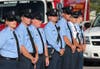 Police, fire, elected officials and community members gathered for a memorial service Tuesday morning.