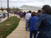 The line stretched across the pedestrian bridge over Honeygo Boulevard, as police closed part of the far right lane leading into the park's parking lot.